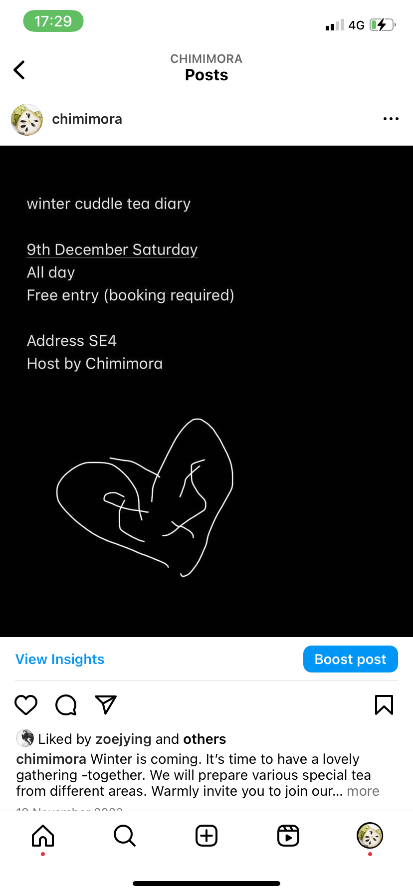 Winter cuddle tea diary 09/12/2023